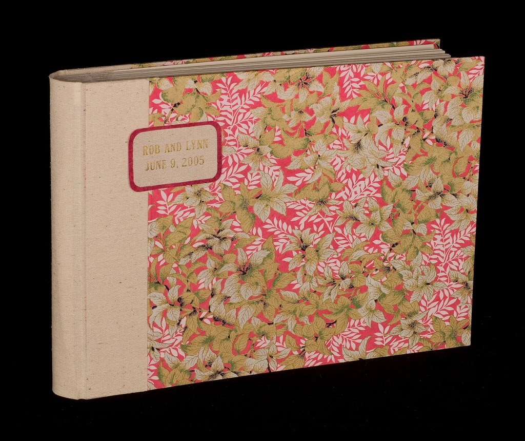 These albums are constructed of hinged, acid-free museum board and made from selected papers and matching silk bookcloth. They can be custom-ordered using any of my wide selection of papers from around the world and are available with or without the matching box.
